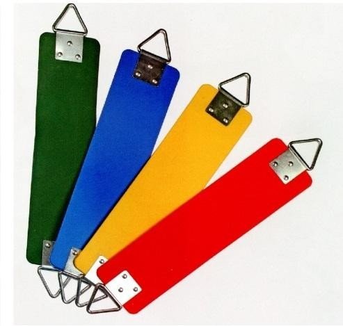 Flexible belt swings in vibrant colors, durable for older kids on playgrounds.