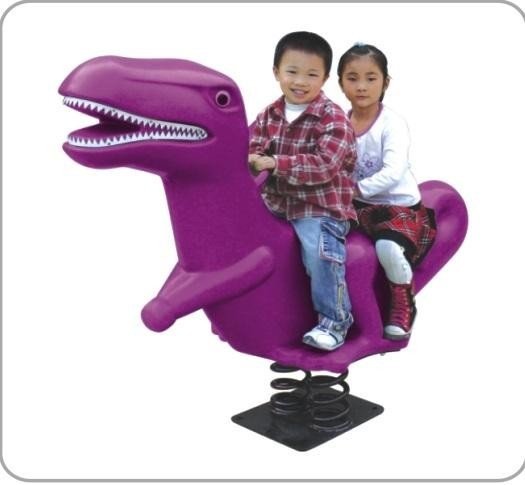 Purple dinosaur spring rocker for two, large dino design for shared play, sparking prehistoric adventures.