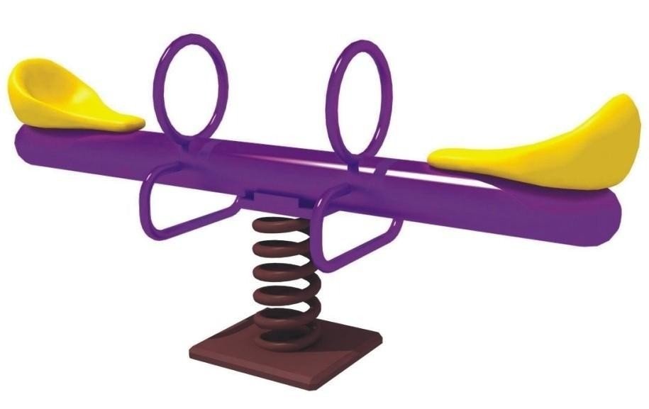 Purple spring seesaw, spring-mounted for bouncy motion, safe and fun for small kids to rock together.