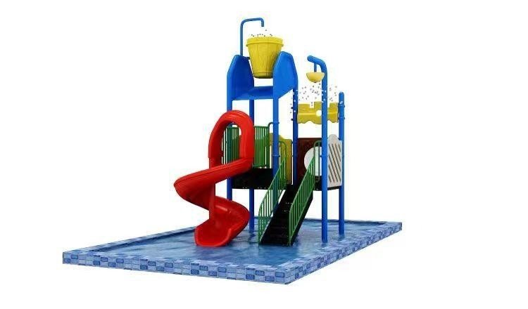 Vibrant outdoor playground structure featuring a prominent red spiral slide, multiple climbing ladders, small platforms, and colorful accents in blue, yellow, and green for exciting play. Ideal for kids to climb, slide, and explore safely.