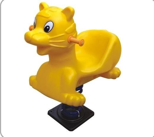 Yellow cat spring rocker, feline-shaped seat with spring base, encouraging active and playful bouncing.